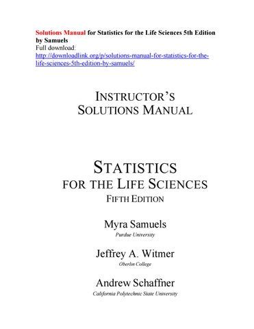 Download STATISTICS FOR THE LIFE SCIENCES SOLUTIONS MANUAL mobipocket